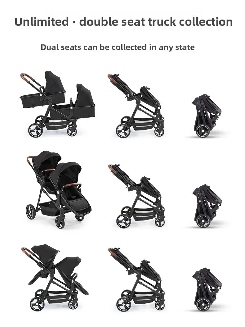 3in1 Twins baby stroller with car seat Lightweight small folded carry on baby carriage multifunctional baby strollers